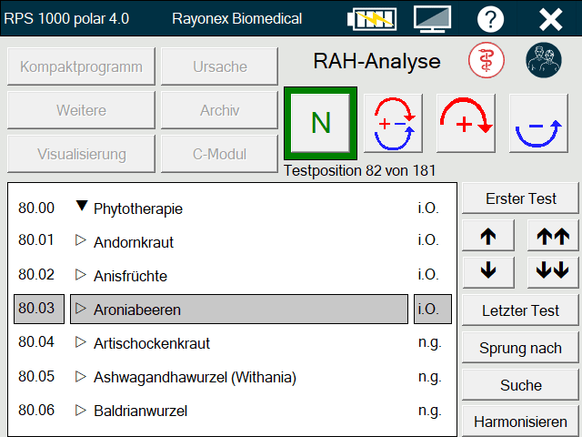Nach der Freischaltung steht das RAH-Modul Phytotherapie im Rayocomp PS 1000 polar 4.0 zur Verfügung.Die Programme können einzeln, kombiniert oder automatisiert über den ITP-Scan getestet werden.
