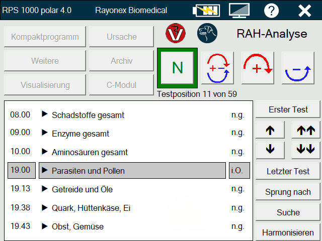 Mit dem RAH-Globaltest VET steht für den Rayocomp PS 1000 polar 4.0 eine Zusammenstellung von 11 übergeordneten Bereichen und insgesamt 97 RAH-Programmen im Bereich von RAH 19.00 bis RAH 19.99 zur Verfügung. Durch die Ebenentestung kann per Klick am Rayotensor von übergeordneten Bereichen in Detailbereiche gesprungen und getestet werden. Aufgrund der Schnelligkeit des RAH VET im Rayocomp PS 1000 polar 4.0 kann die energetische Testung von unverträglichen Substanzen schnell und sicher durchgeführt werden.